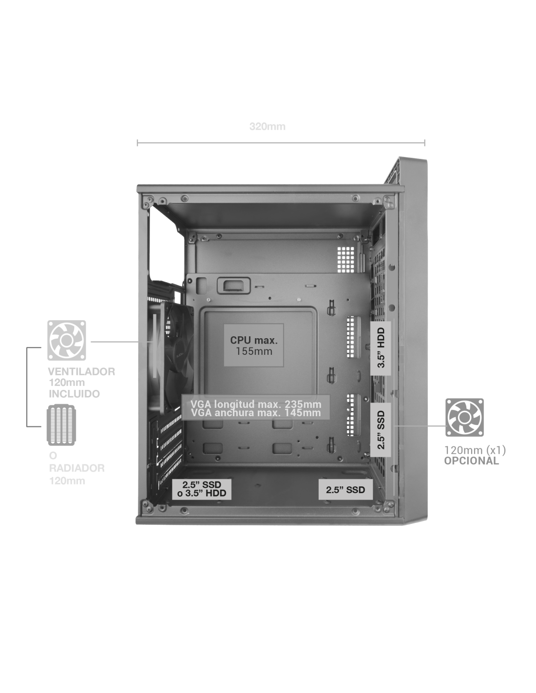 • Minitorre MicroATX / Mini‑ITX