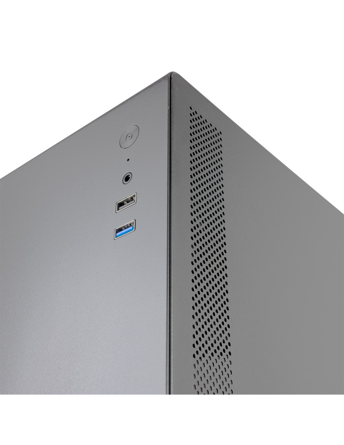 La minitorre ultracompacta NOVAX550BR combina un diseño minimalista totalmente metálico con una estructura robusta y funcionalidad avanzada. Ideal para configuraciones MicroATX y Mini-ITX, ofrece una sorprendente capacidad interna para hasta 4 discos duros y tarjetas gráficas de hasta 250mm. Su ventilador trasero asegura una refrigeración eficiente, mientras que su fuente de alimentación de 550W con certificación 80 Plus Bronze 230V garantiza un rendimiento energético óptimo. Con un panel frontal que incluye puertos USB 3.0, 2.0 y audio HD, la NOVAX550BR es perfecta para usuarios que buscan durabilidad, elegancia y rendimiento en un formato compacto.