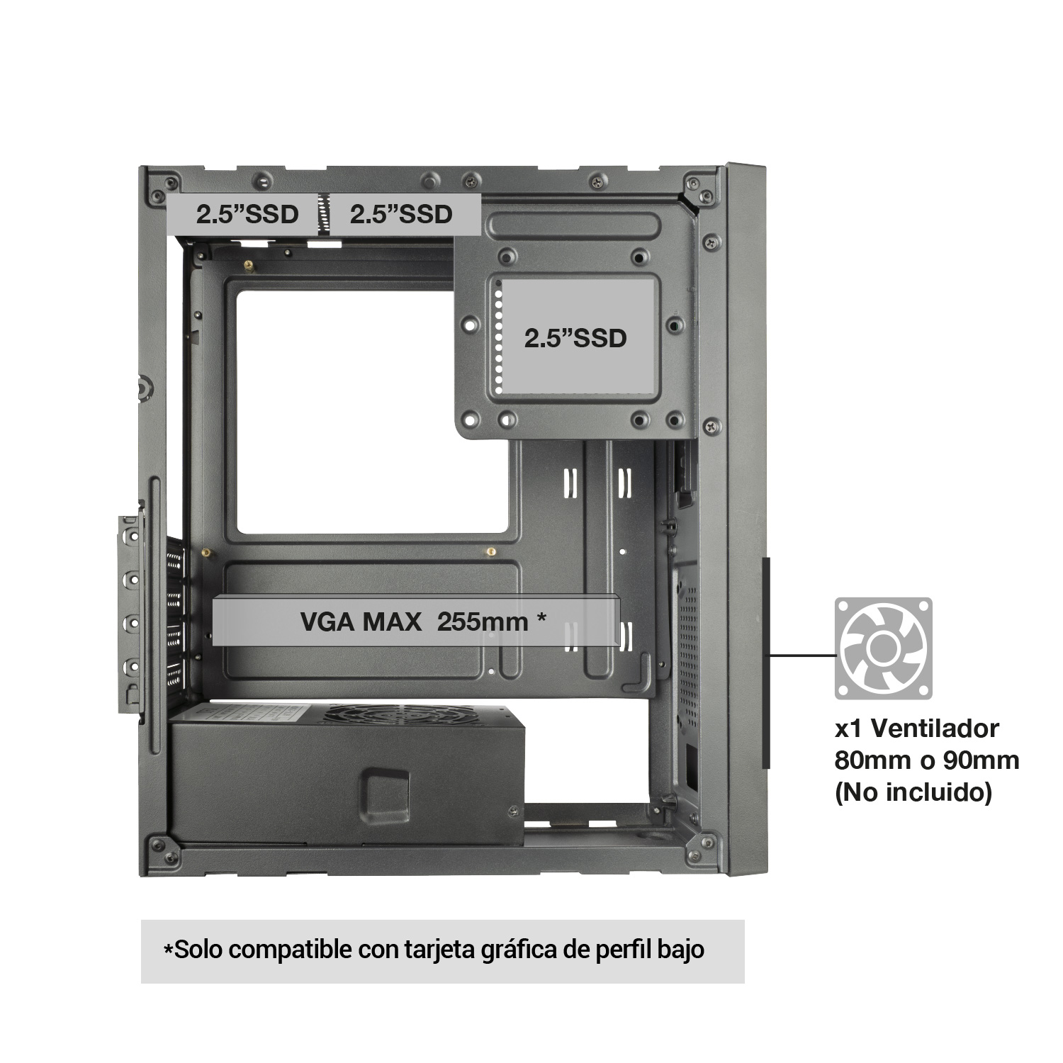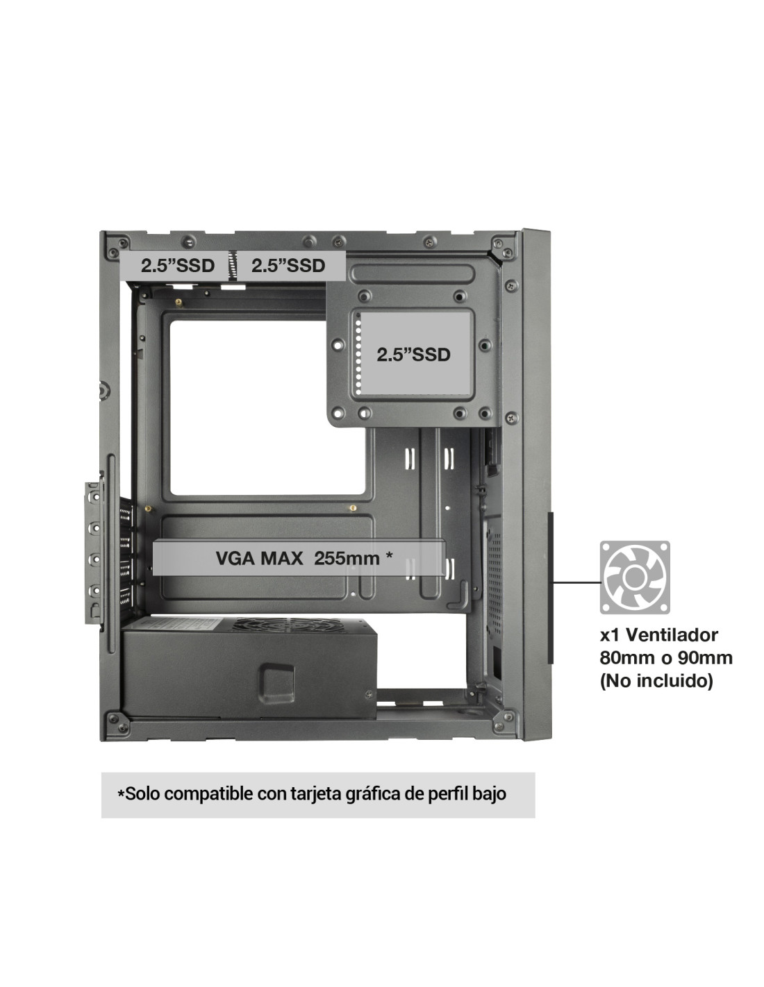 - 70mm (sin adaptador SSD) - 60mm