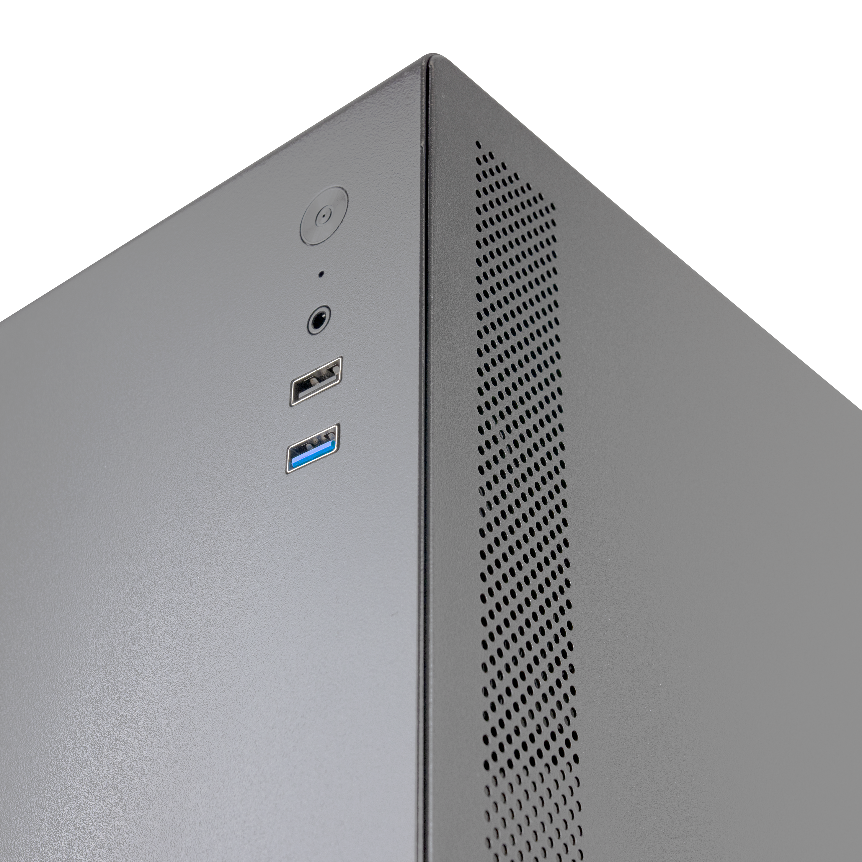The NOVAX minitower offers a range of versatile connections to meet the needs of the most demanding users. Among its connectivity options, it includes a USB 3.0 port, which allows high-speed data transfers, ideal for external storage devices and modern peripherals, as well as a USB 2.0 port. To complement these features, the NOVAX is also equipped with a combined HD audio and microphone input, facilitating the connection of audio devices in a simple and efficient manner. These strategically located connections make the NOVAX an ideal choice for both home and professional users, offering flexibility and convenience in a compact and resistant design.